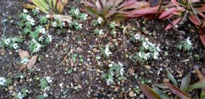 1月も終わりに近づいてきた今日この頃。 すっかり寒くなりましたね。 しょうじょうばかまの横で地面から目を出していた 節分草(セツブンソウ)。 節分草は、2月2日の誕生日花。 きっと2月2日を目指して成長しているのですね。